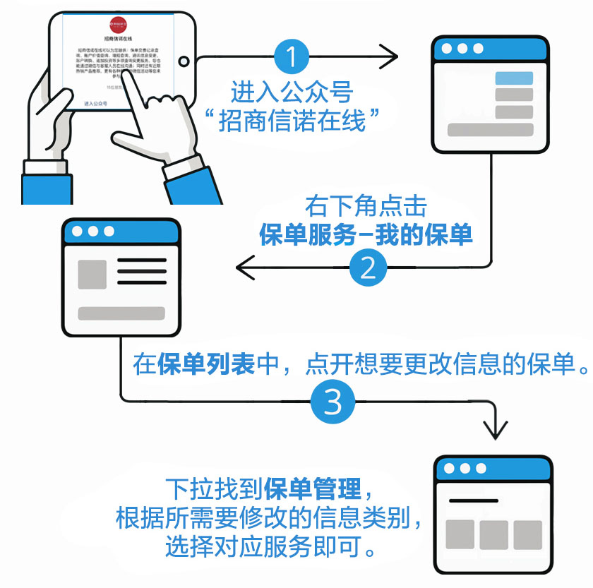 招商信诺的用户们可以通过以下几个渠道,来办理保单变更: