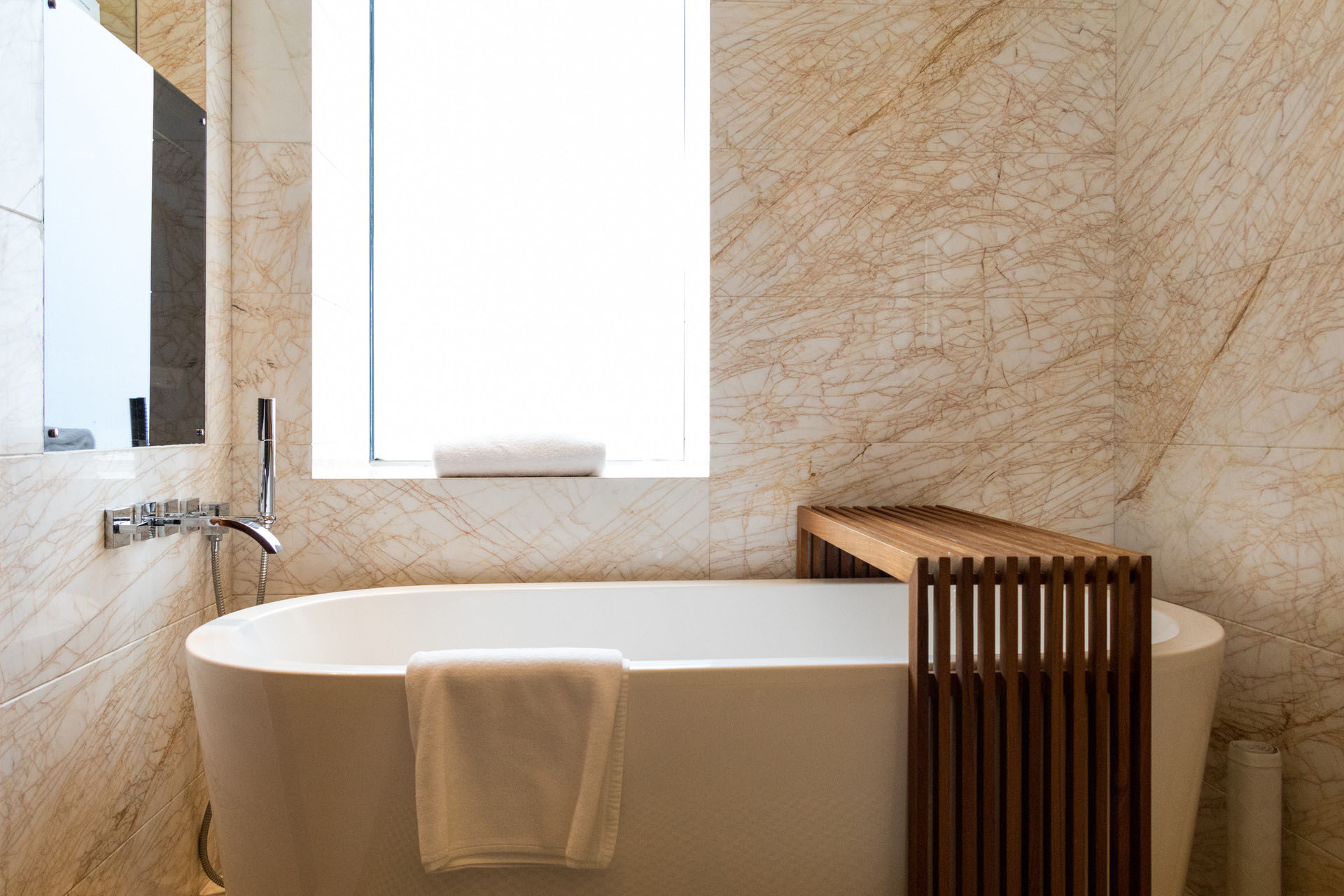 进入浴室后,热水开一会就会产生蒸气。