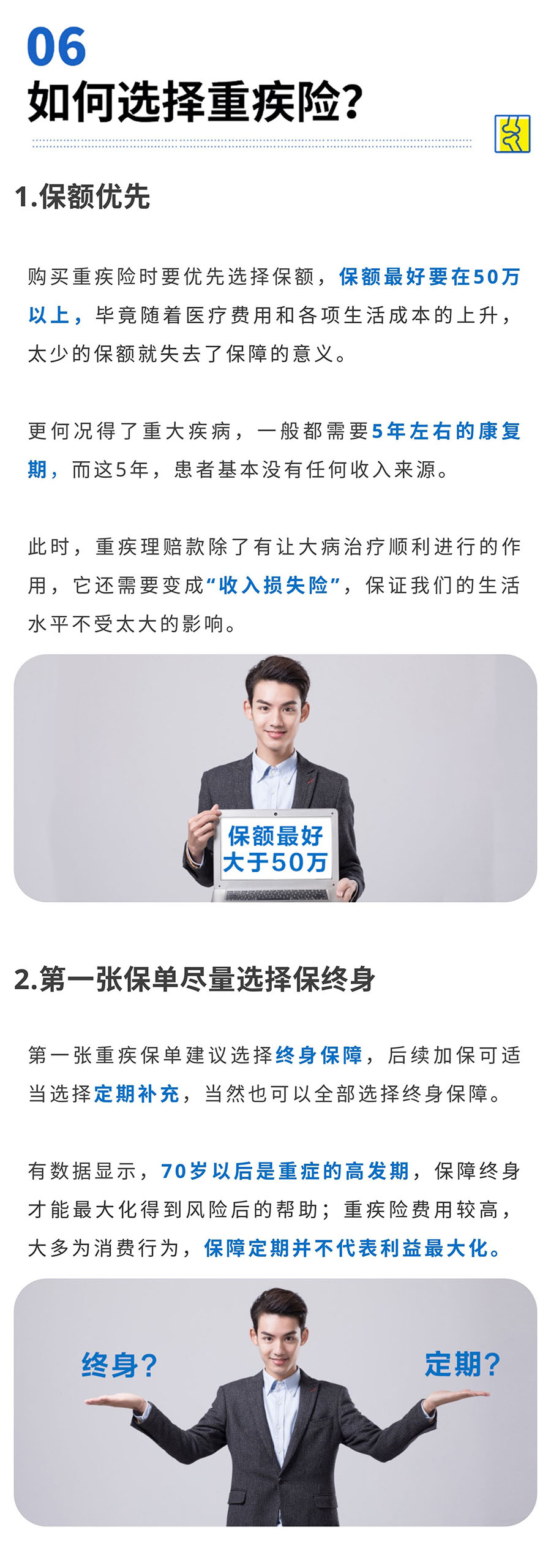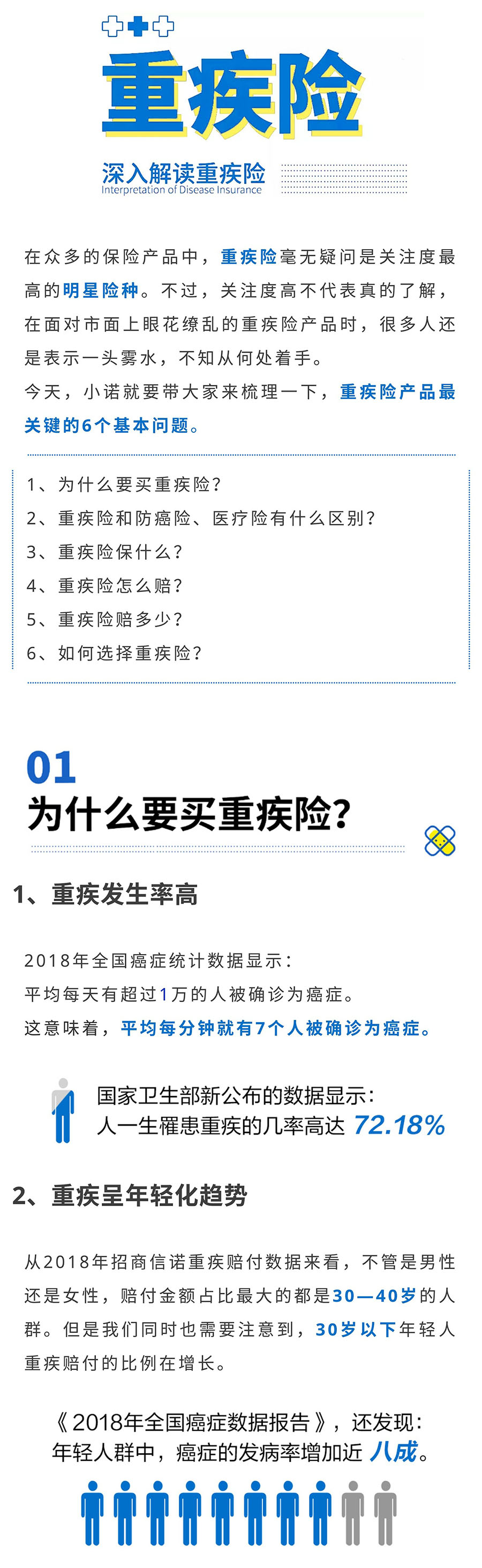 摘要:在众多的保险产品中,重疾险毫无疑问是关注度最高的明星险种。不过,在面对市面上眼花缭乱的重疾险产品时,很多人还是表示一头雾水,小诺就要带大家来梳理一下,重疾险产品最关键的6个基本问题。