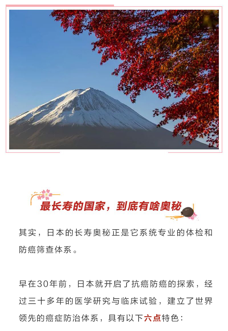 摘要:日本的长寿奥秘正是它系统专业的体检和防癌筛查体系。