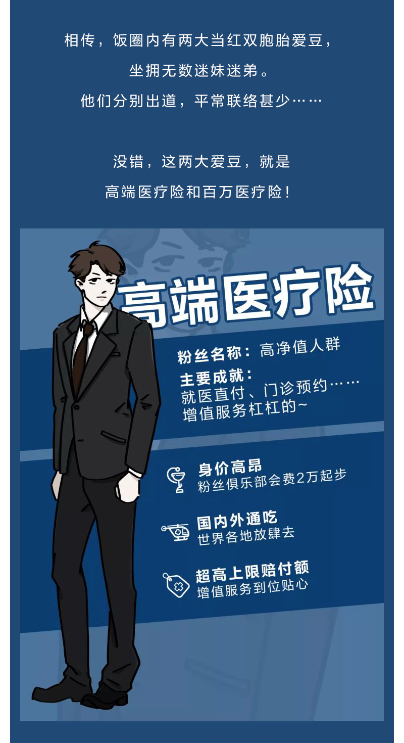 摘要:相传,饭圈内有两大当红双胞胎爱豆, 坐拥无数迷妹迷弟。 他们分别出道,平常联络甚少…… 没错,这两大爱豆,就是 高端医疗险和百万医疗险!