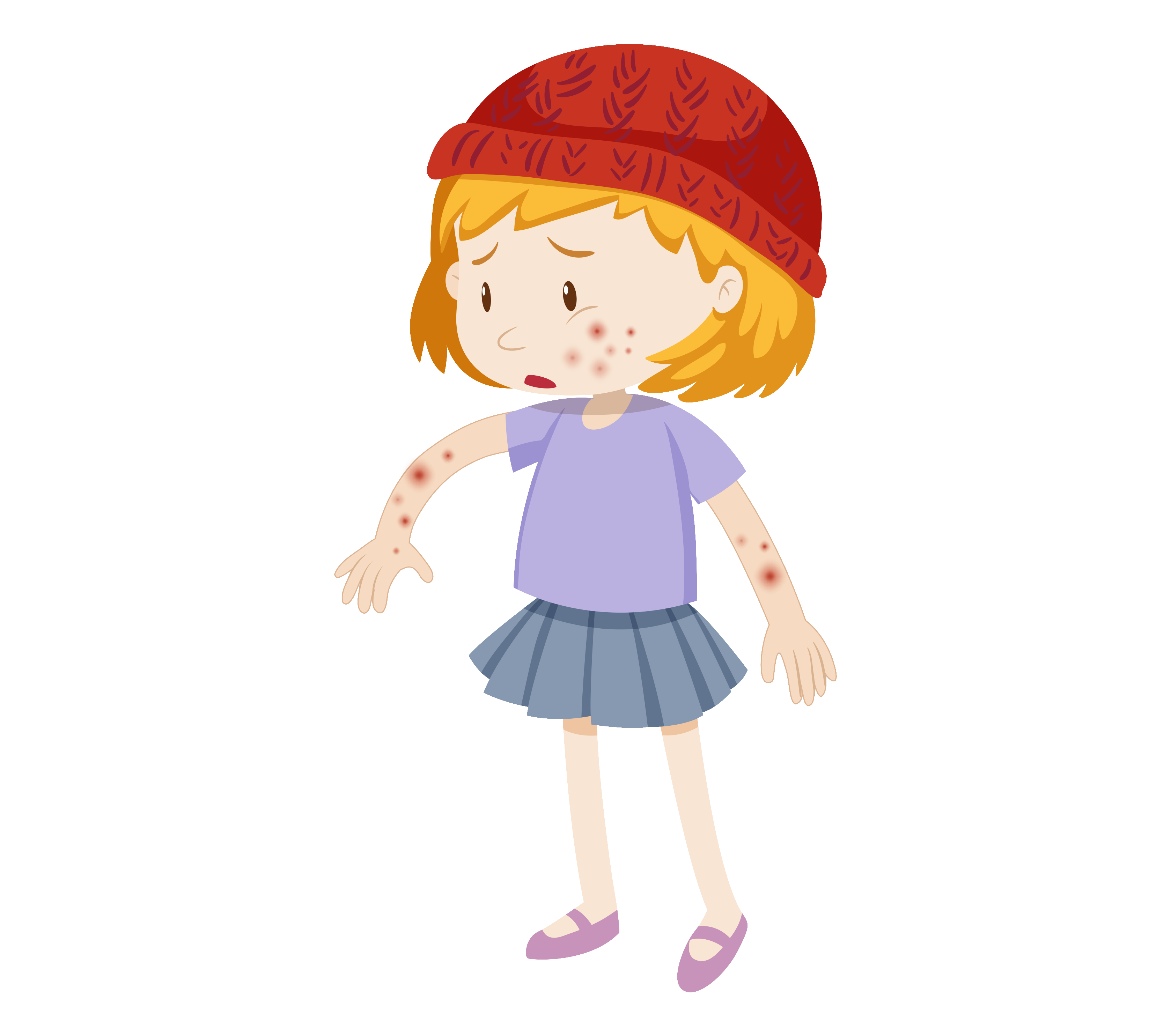 第一天你会在孩子的身上发现5~20个红色皮疹。这些皮疹看起来像是蚊虫叮咬的,孩子可能会觉得痒,还会发烧。
