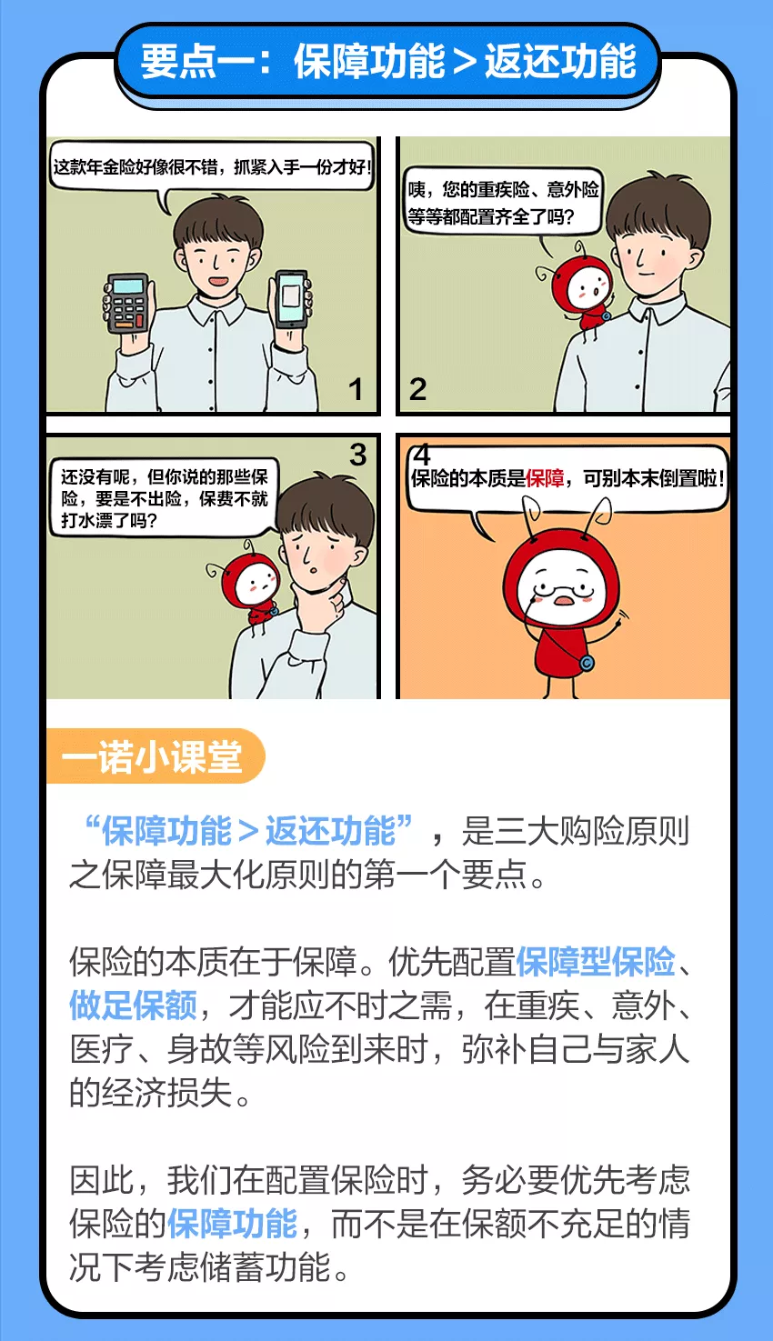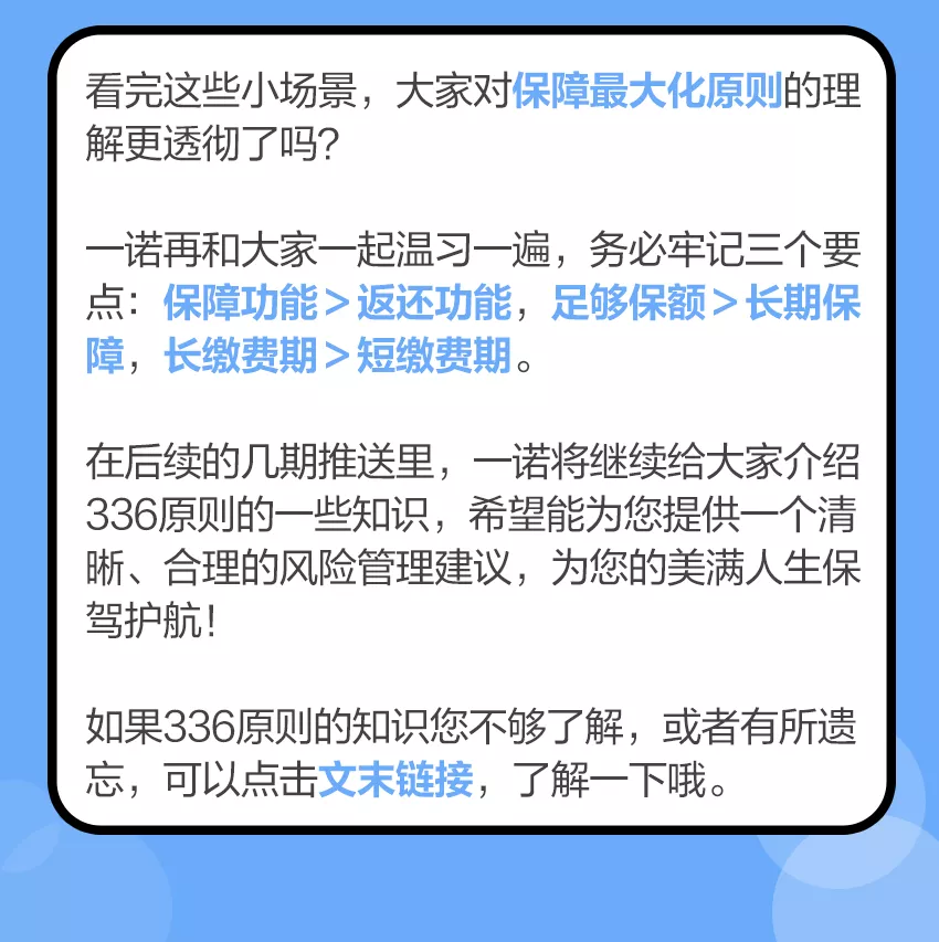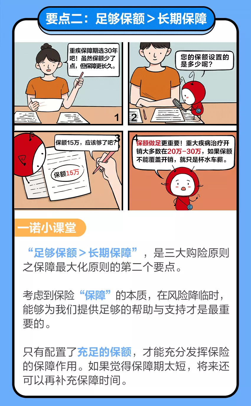 摘要:保障最大化原则,就是指在保险配置时,以合理的保费支出,换取最大效果的保障。可以拆分成三个要点:保障功能>返还功能,足够保额>长期保障,长缴费期>短缴费期。