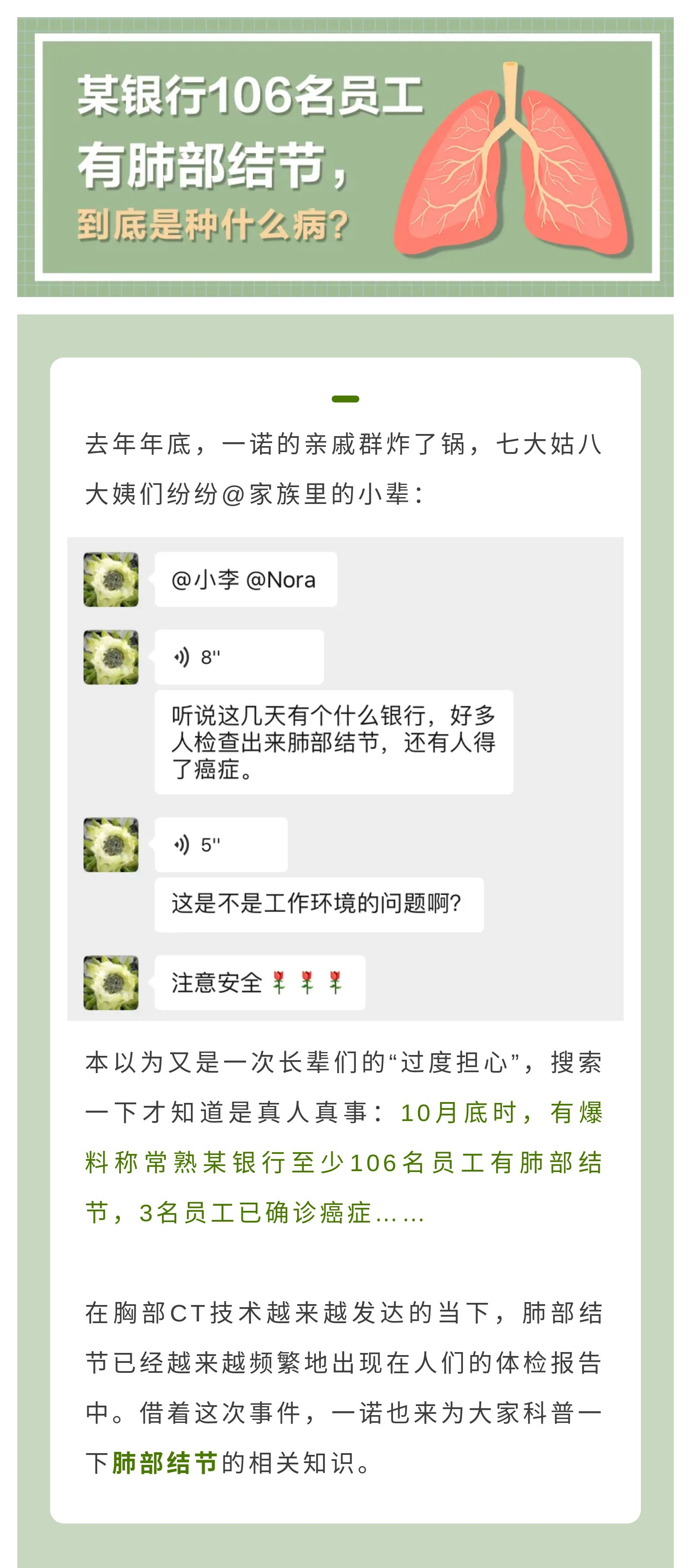 热点话题 | 某银行上百名员工查出肺部结节,这到底是种什么病?