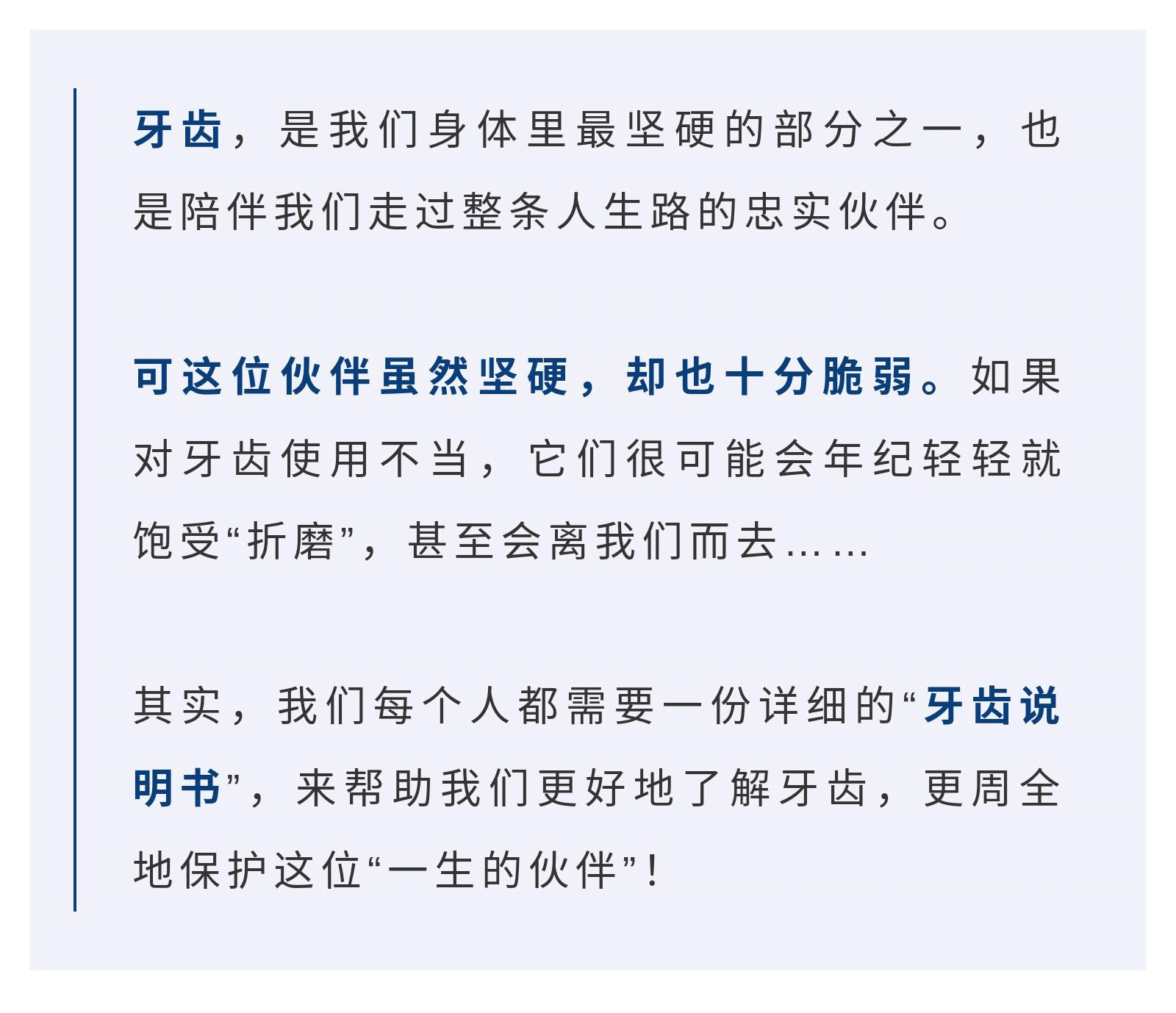 摘要:我们每个人都需要一份详细的“牙齿说明书”,来帮助我们更好地了解牙齿,更周全地保护这位“一生的伙伴”!