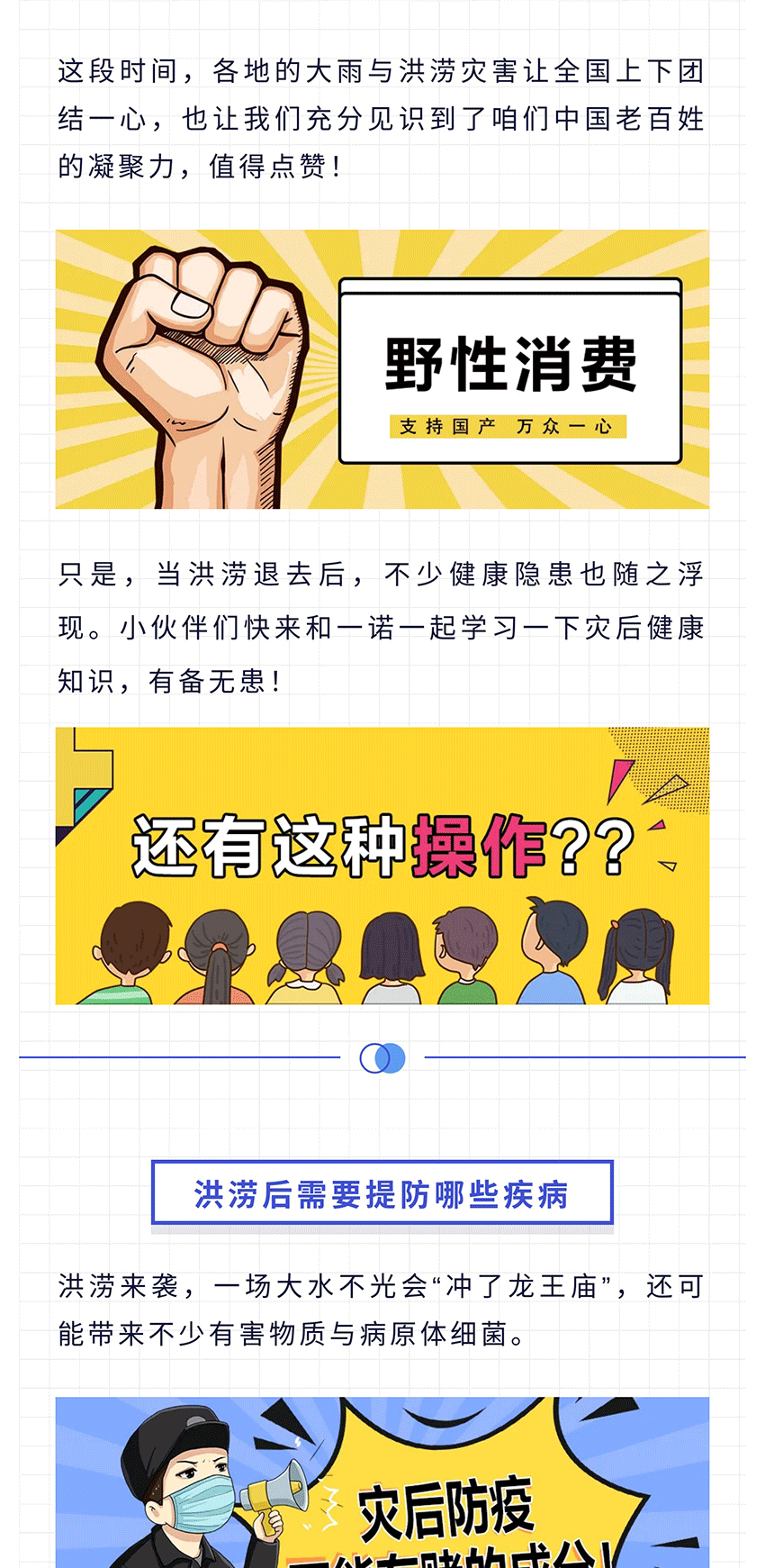摘要:这段时间,各地的大雨与洪涝灾害让全国上下团结一心,也让我们充分见识到了咱们中国老百姓的凝聚力,值得点赞!只是,当洪涝退去后,不少健康隐患也随之浮现。小伙伴们快来和一诺一起学习一下灾后健康知识,有备无患!