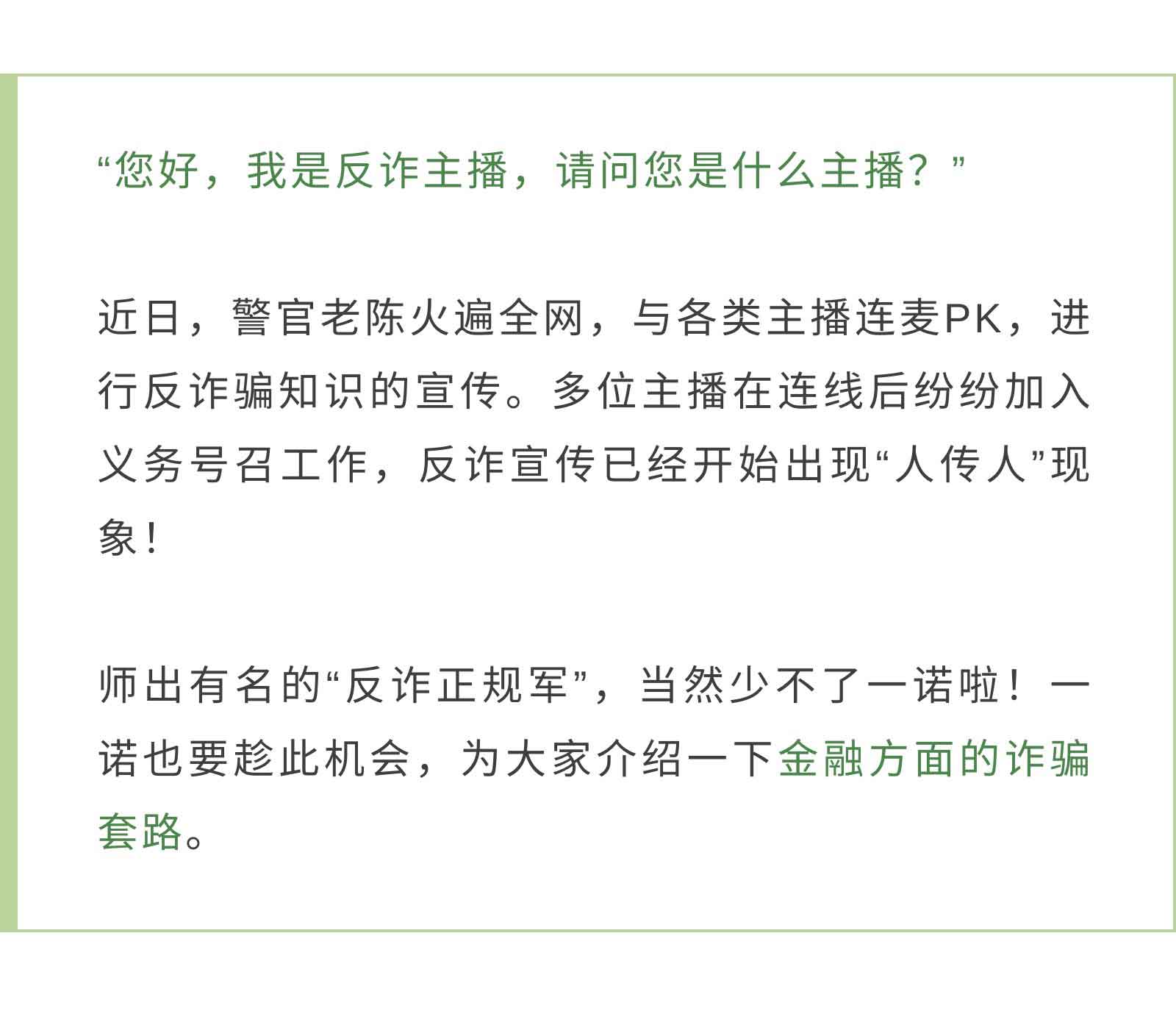 摘要:近日,警官老陈火遍全网,与各类主播连麦PK,进行反诈骗知识的宣传。多位主播在连线后纷纷加入义务号召工作,反诈宣传已经开始出现“人传人”现象!