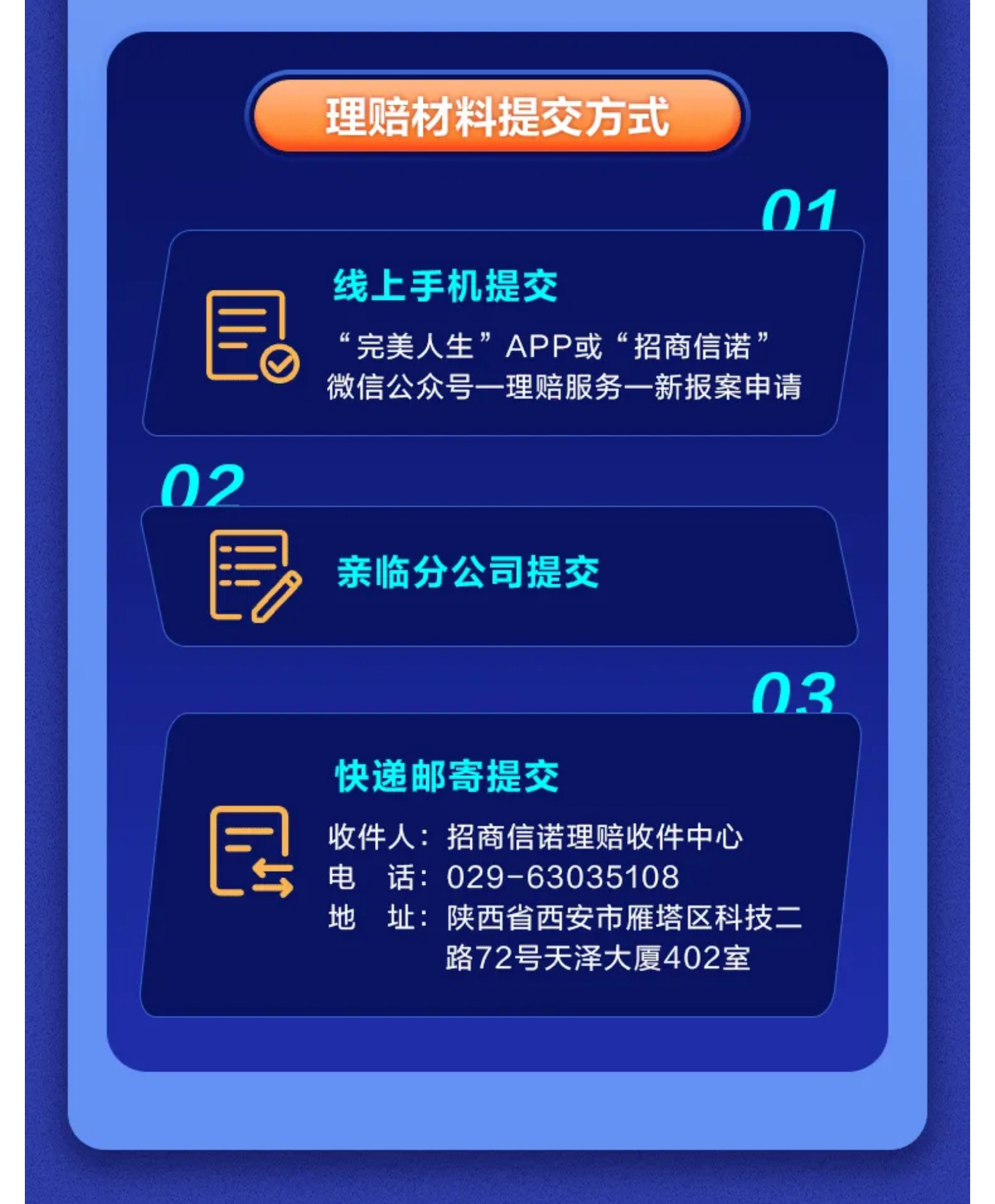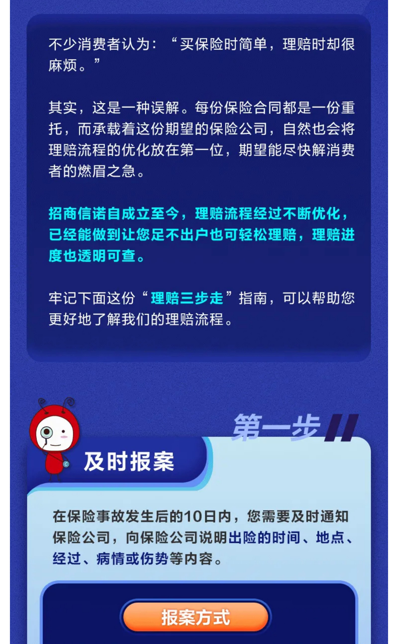 摘要:招商信诺自成立至今,理赔流程经过不断优化,已经能做到让您足不出户也可轻松理赔,理赔进度也透明可查。牢记下面这份“理赔三步走”指南,可以帮助您更好地了解我们的理赔流程。
