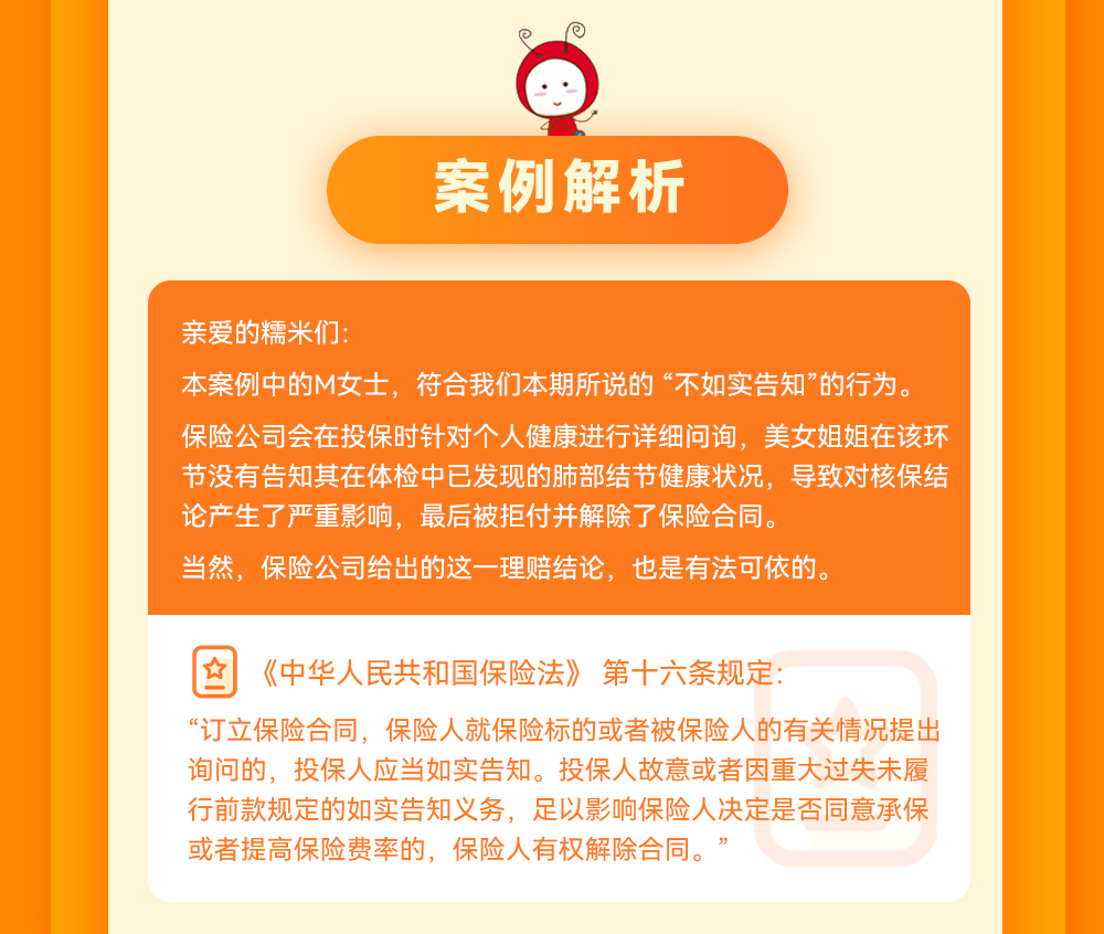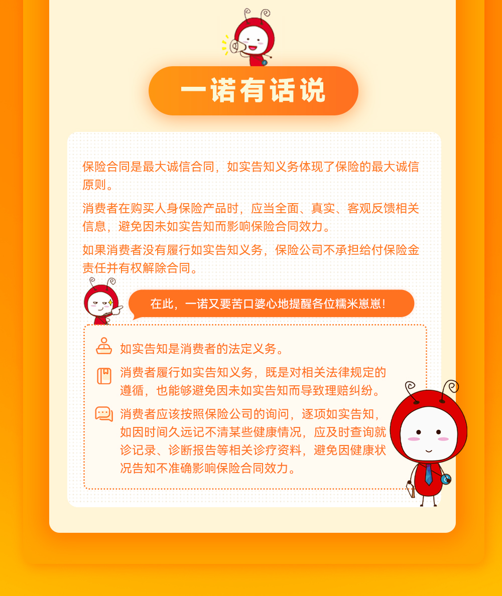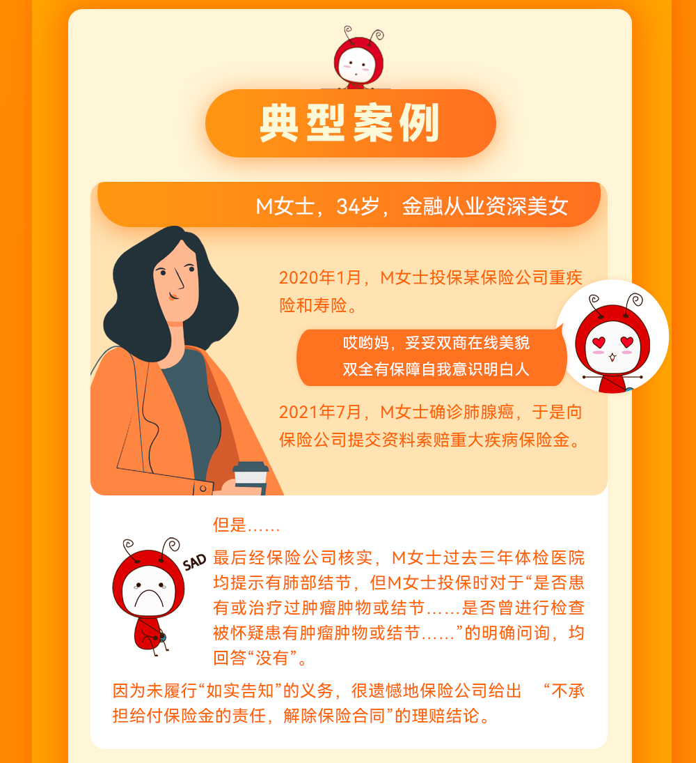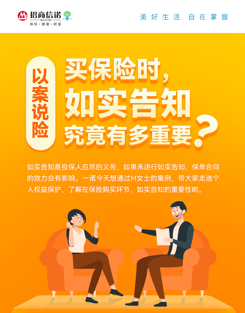 摘要:如实告知是投保人应尽的义务,如果未进行如实告知,保单合同的效力会有影响。一诺今天想通过M女士的案例,带大家走进个人权益保护,了解在保险购买环节,如实告知的重要性哟。