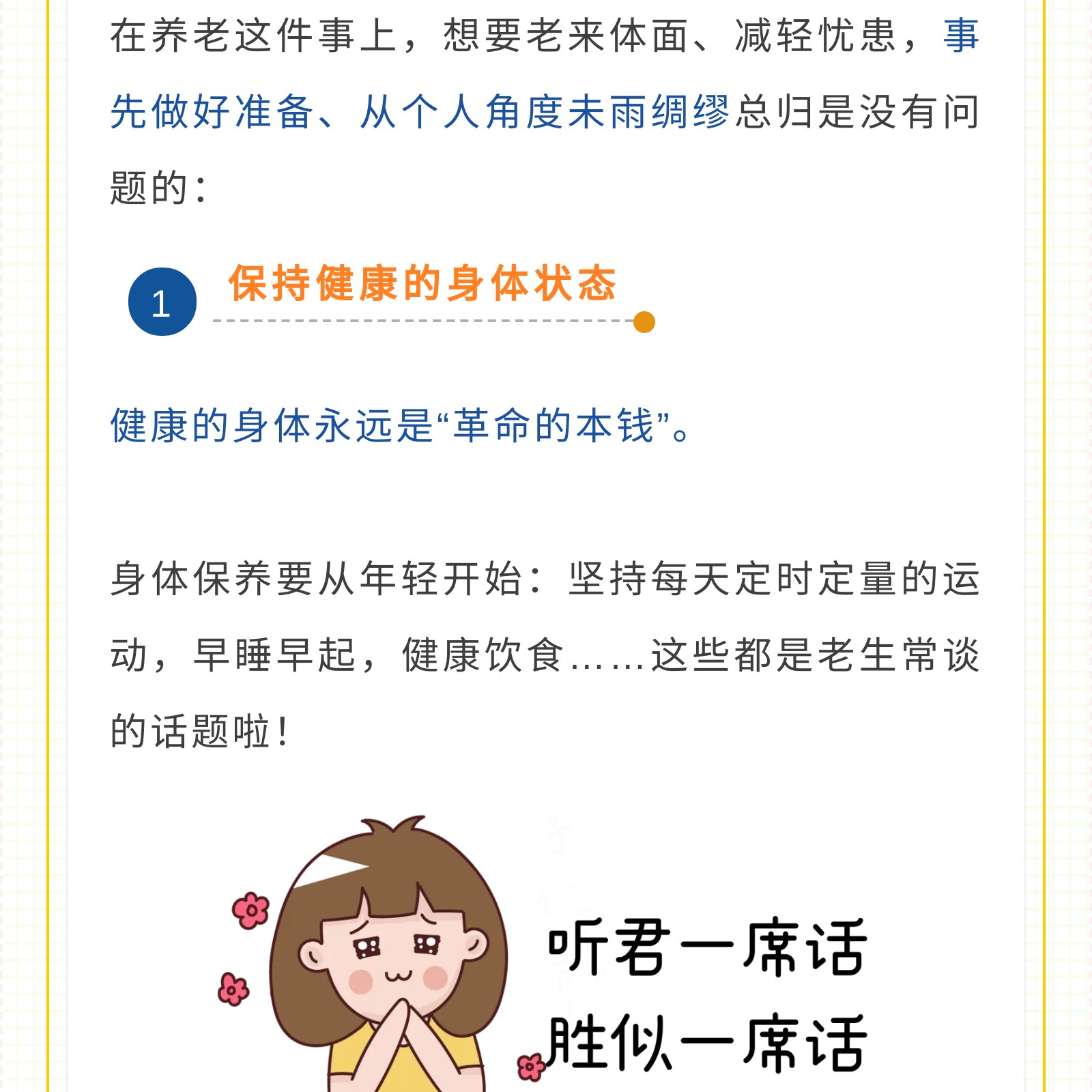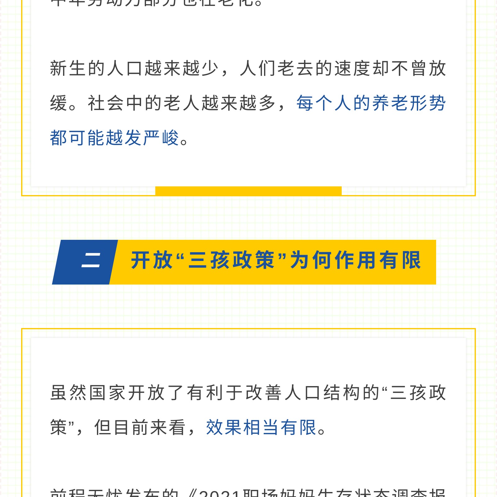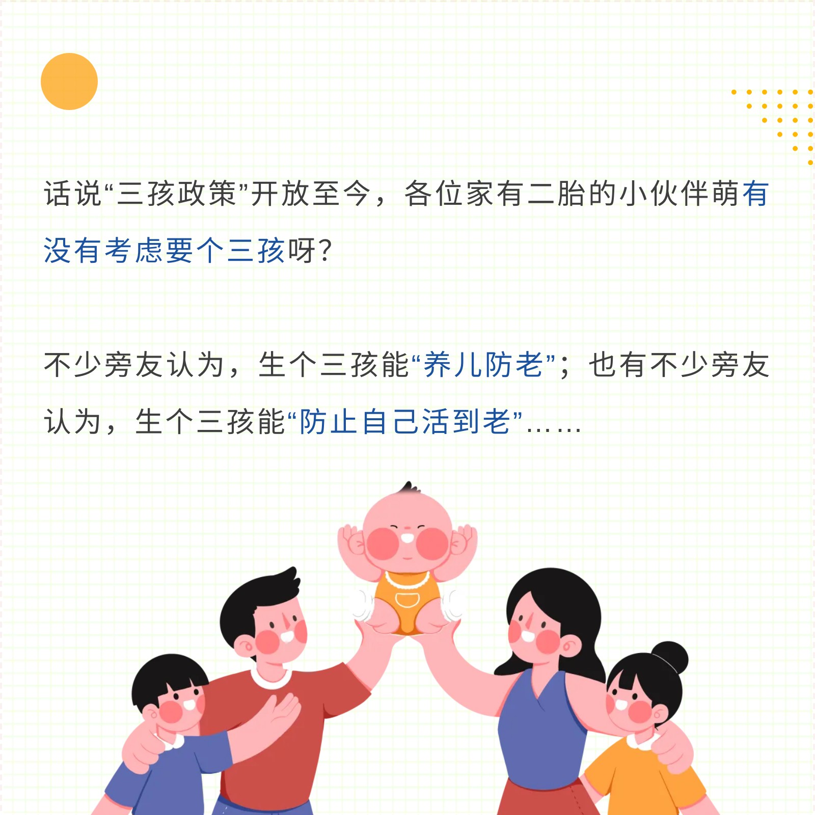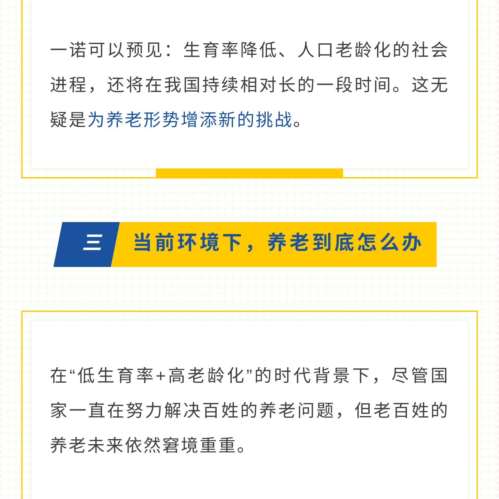 摘要:我国生育率持续走低,“三胎开放”政策对于现在的家庭来说可望不可及,因为越来越高的养娃开支与生活成本。生育率降低约等于老龄化进一步加深,所以要想养老生活幸福,我们需要提前做准备,保持健康的身体状态,树立适当的经济观念,借助合适的养老工具比如配置一款养老年金保险。