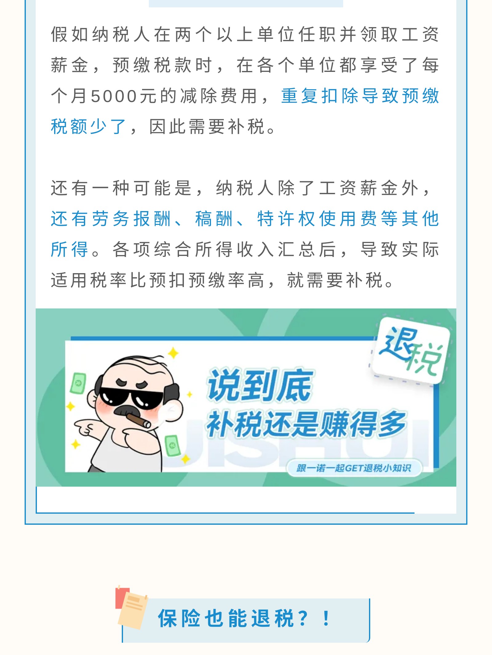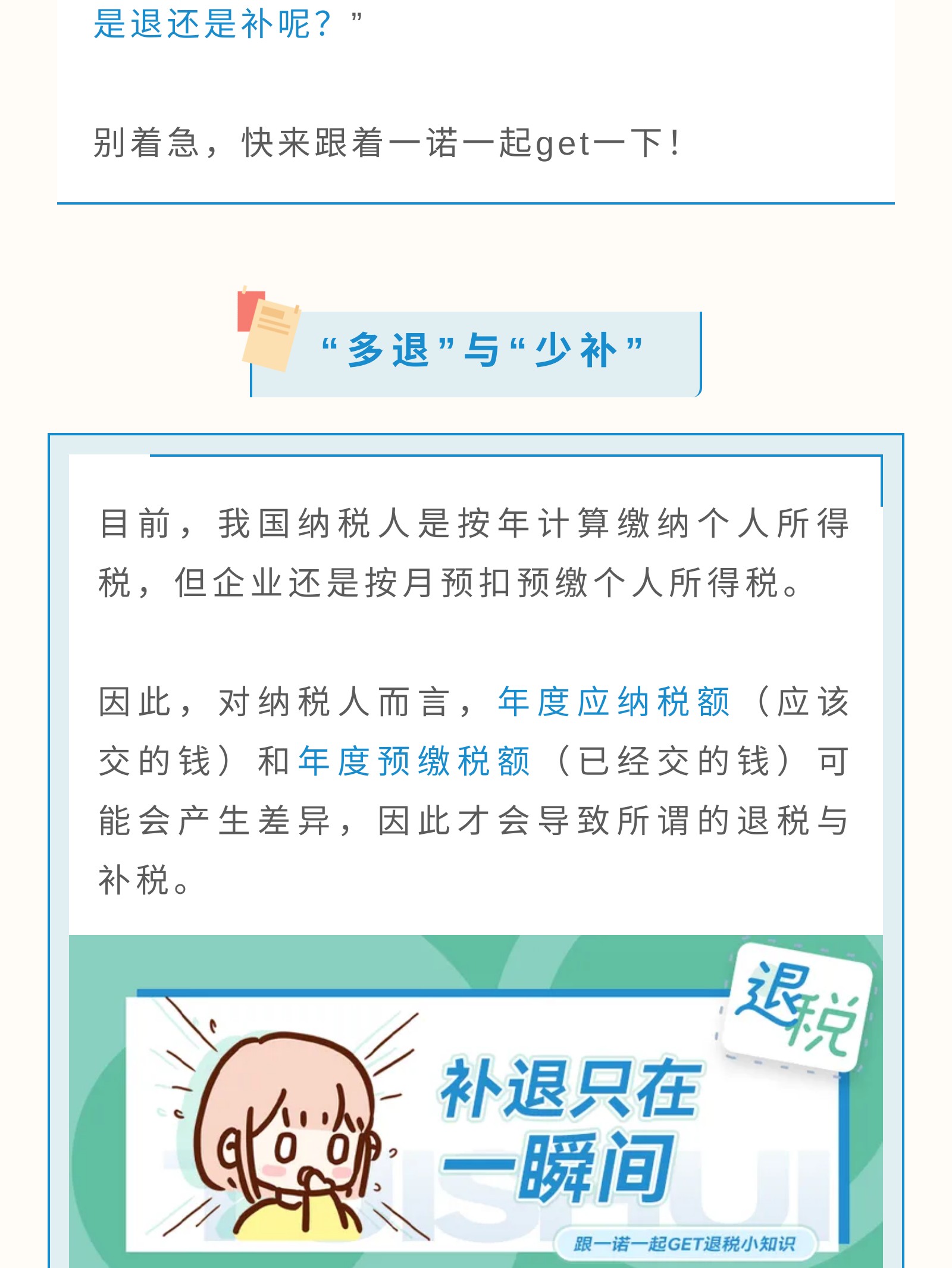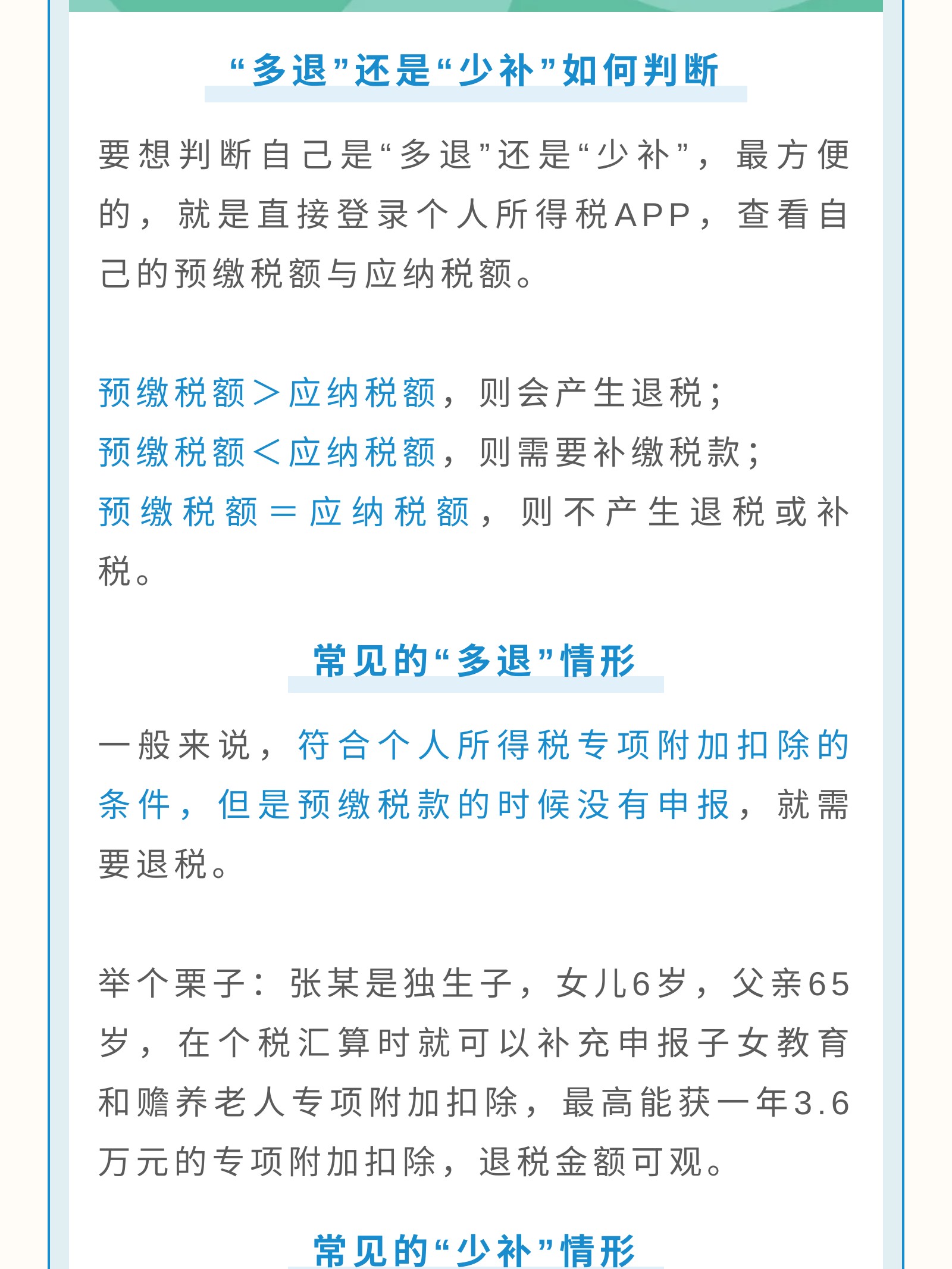 摘要:“纳税”,“退税”出现的“多退”常见情形与“少补”的常见情形以及该如何判断纳税人们税额的“多退少补”情况。还有可以享受退税政策的保险险种,作为合格的纳税人,一定要按时申报,按时缴税。