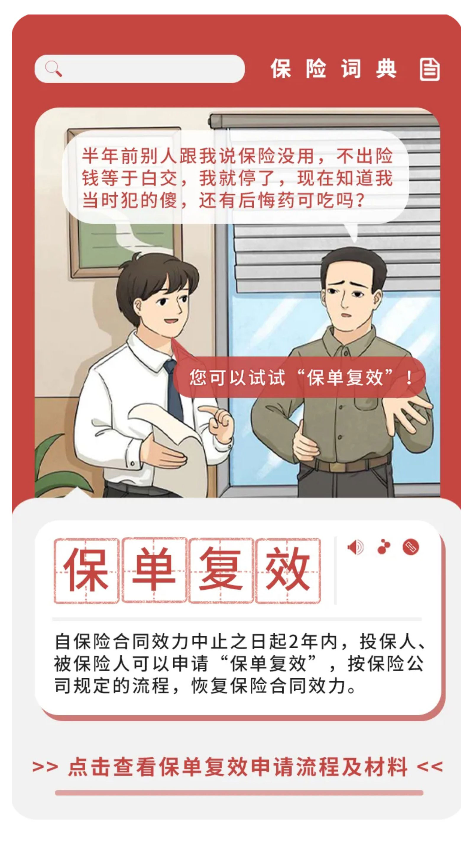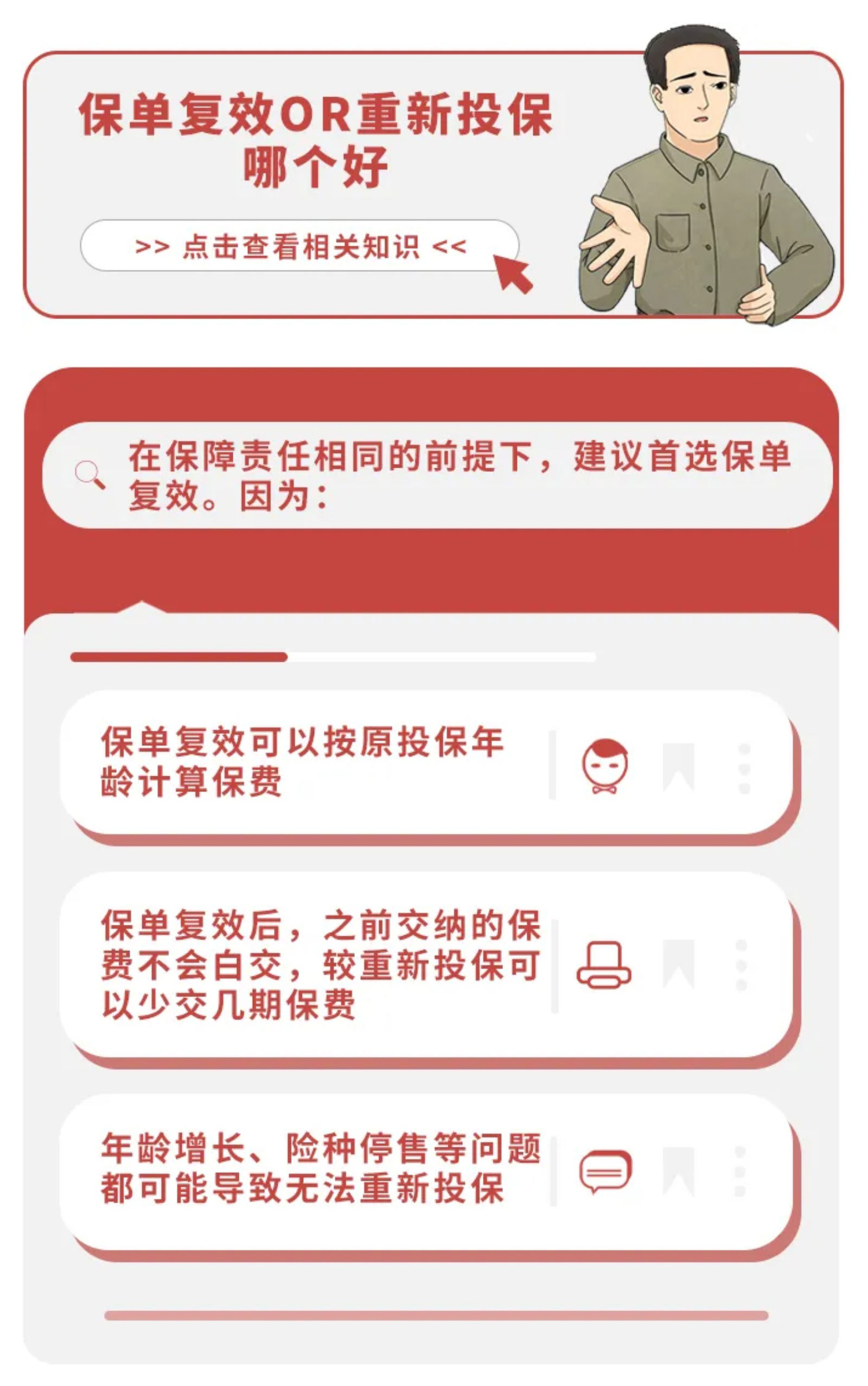 摘要:现在很多小伙伴经常吐槽自己,工作任务没有尽头,工资天天不断流走,午餐晚餐混淆不分,节假休息化为虚有,忙的没有及时续交保费,多年保单瞬间作废,好在现在有一种方法可以完美应对,那就是我们今天要说的“保单复效”,一个可以拯救你保单的存在。