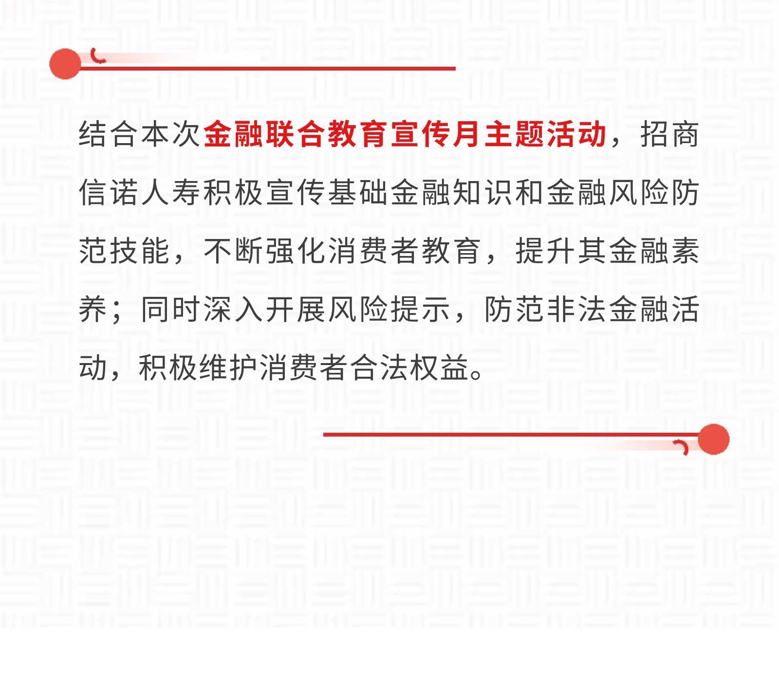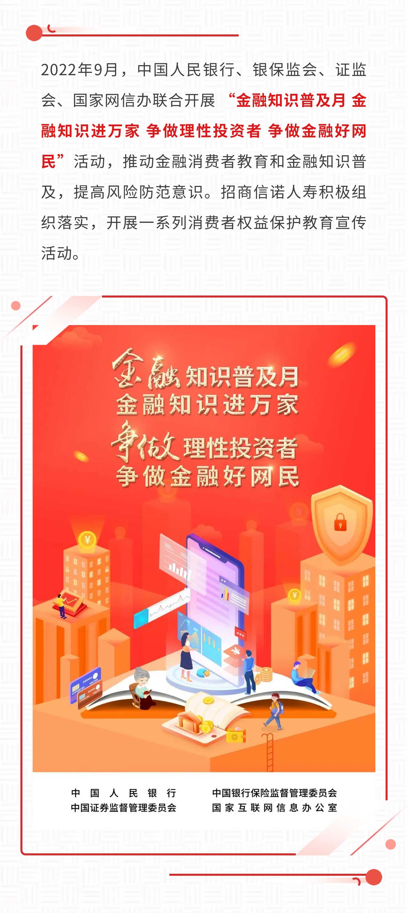 摘要:随着我国经济社会的快速发展和居民收入水平的大幅提升,公众对金融产品的需求日益迫切,对金融知识的重视程度也不断提高。2022年招商信诺人寿保险有限公司“金融联合教育宣传月活动”,推动金融消费者教育和知识普及,提高风险防范意识,提高消费者金融素养,维护金融稳定,增强消费者获得感、幸福感和安全感。
