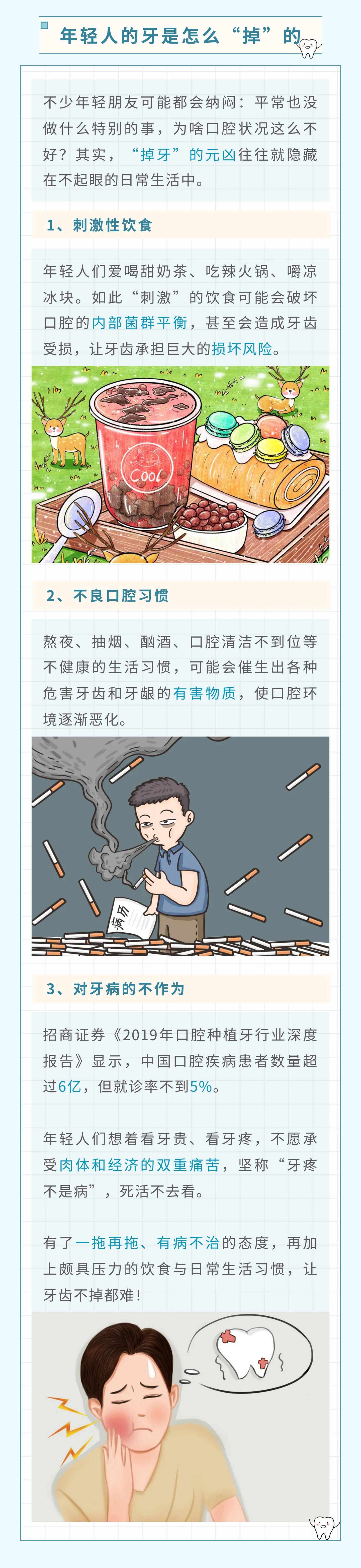 摘要:以前总说牙齿问题是老年人关注的,而现在越来越多的年轻人由于不良生活习惯,也面临着各种牙齿问题,比如:龋齿,牙周炎等,呼吁大家重视牙齿健康!