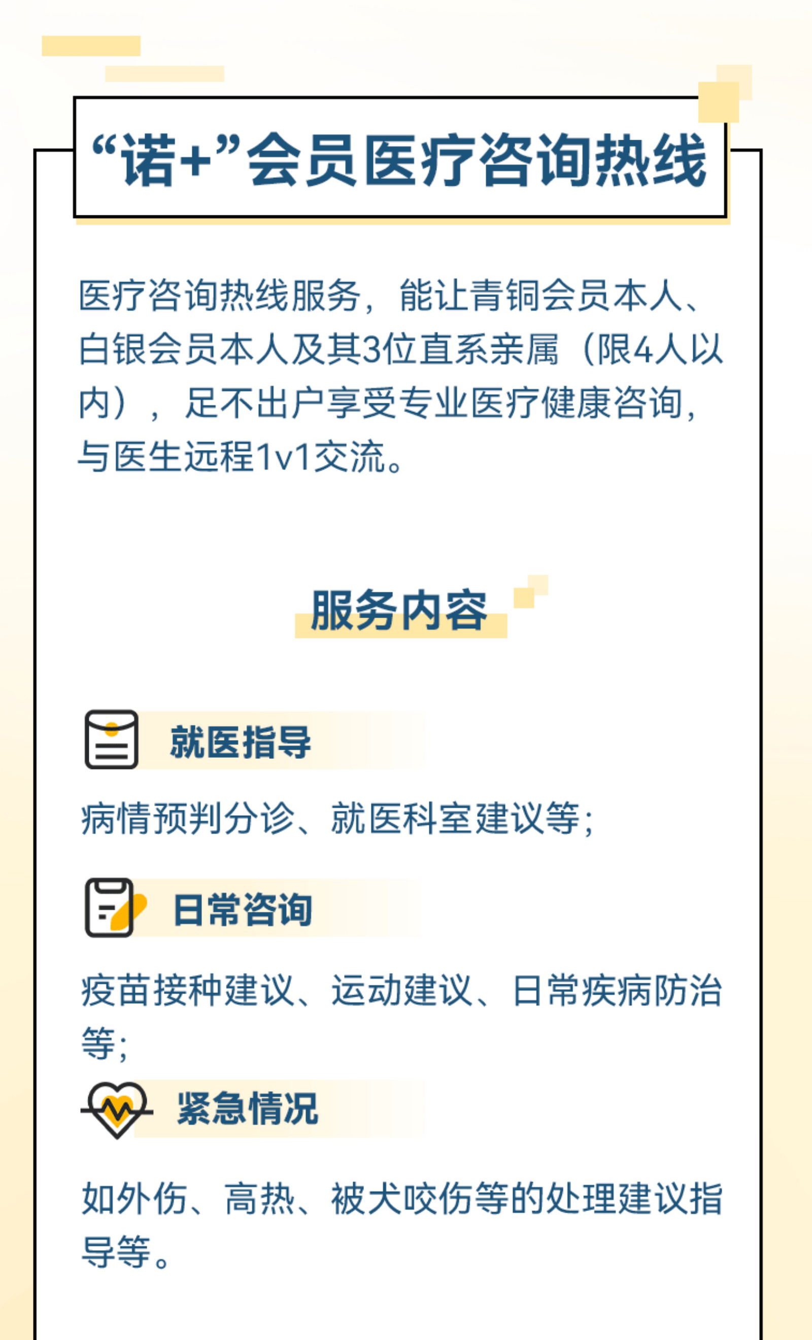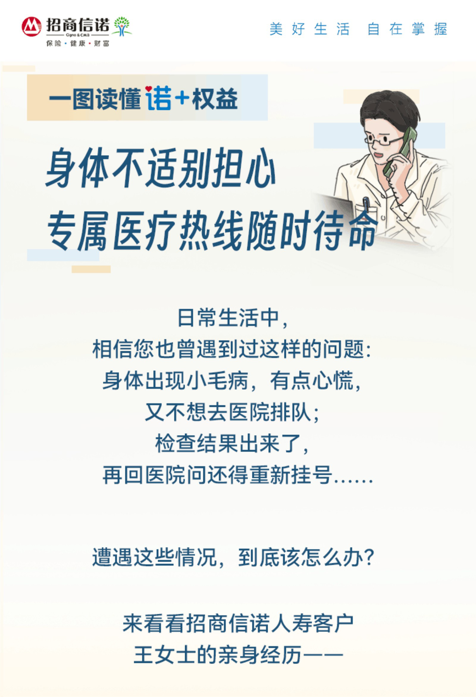 摘要:相信您也遇到过这样的情况:有个头疼脑热、小毛小病,想去医院挂个号,一看人来人往就打起了退堂鼓。去趟医院,时间成本和金钱成本都很高;上网搜索,查到的内容不靠谱;身体健康这件事,万万不能硬抗,到底该怎么办?别怕您的专属医疗热线随时待命!