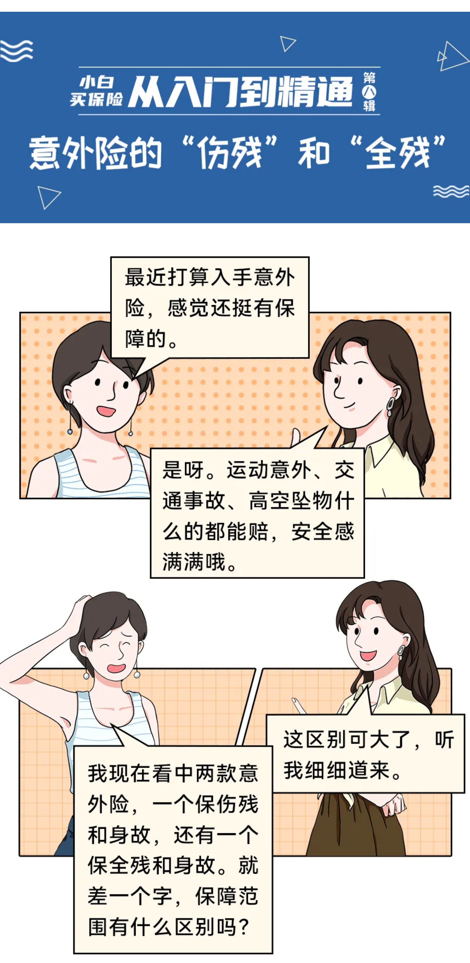 摘要:意外险条款中总会出现“伤残和全残”二字,许多人觉得,就一字之差,区别不会有多大。但其实两者的理赔条件和获得的保障力度,是有很大不同的。那么意外险到底该买保伤残还是保全残,本文就为大家来答疑解惑!