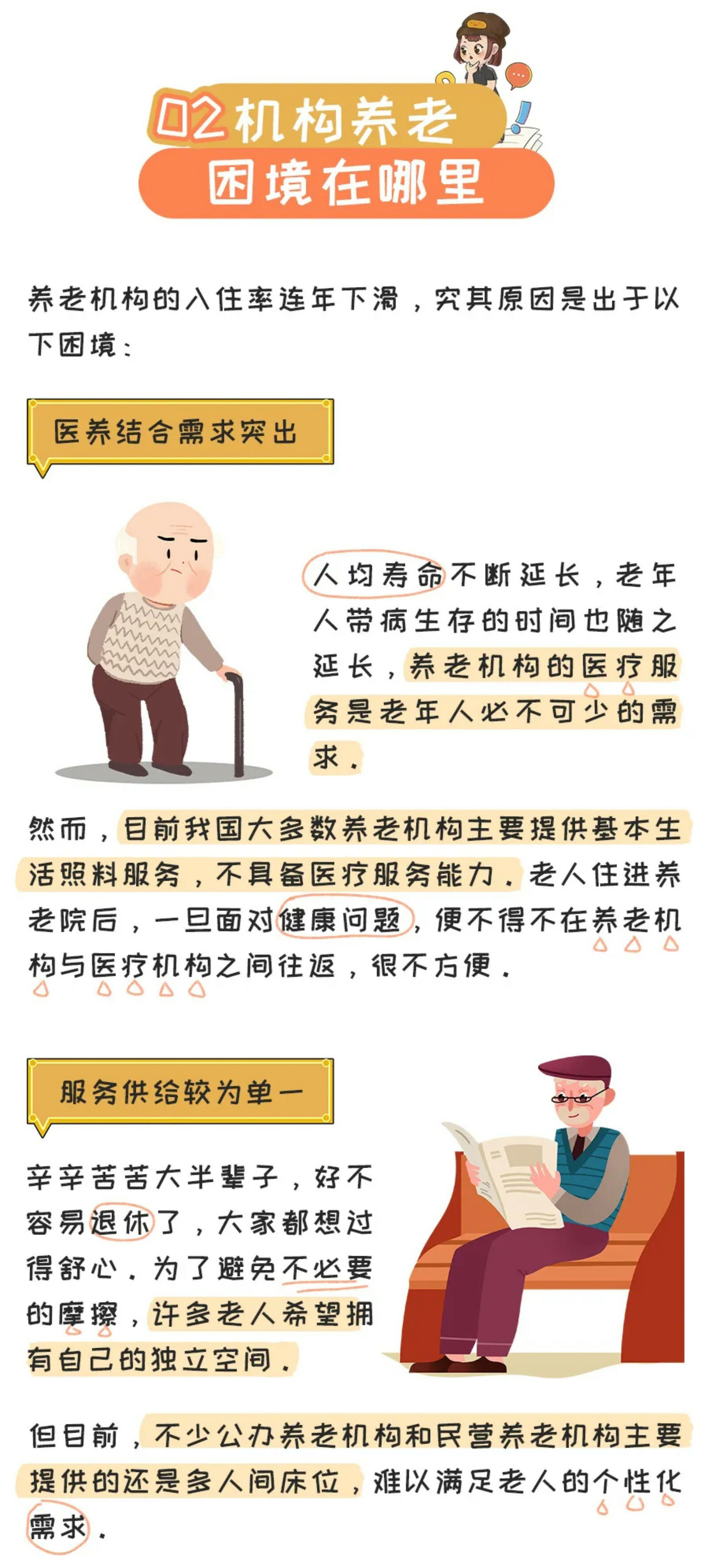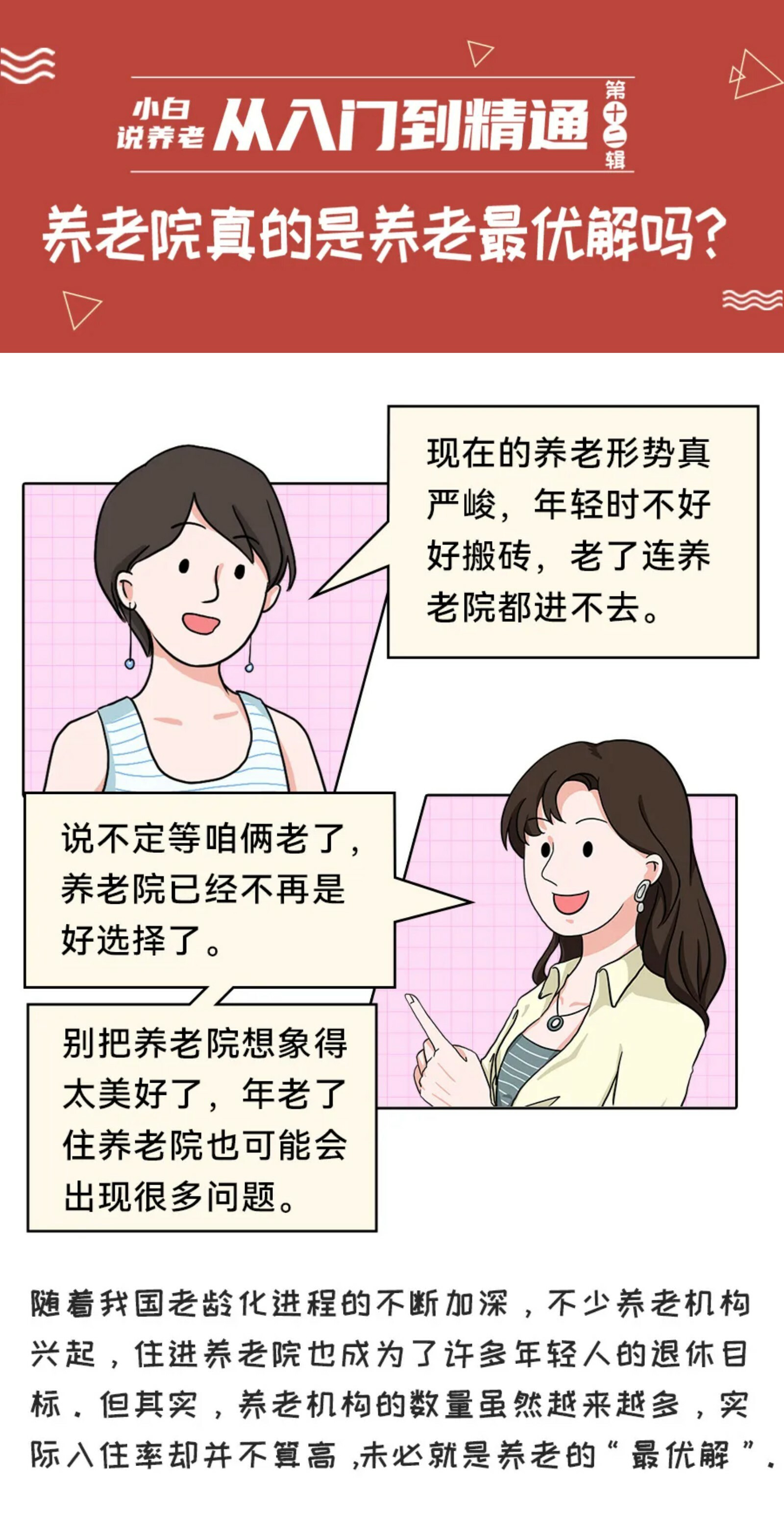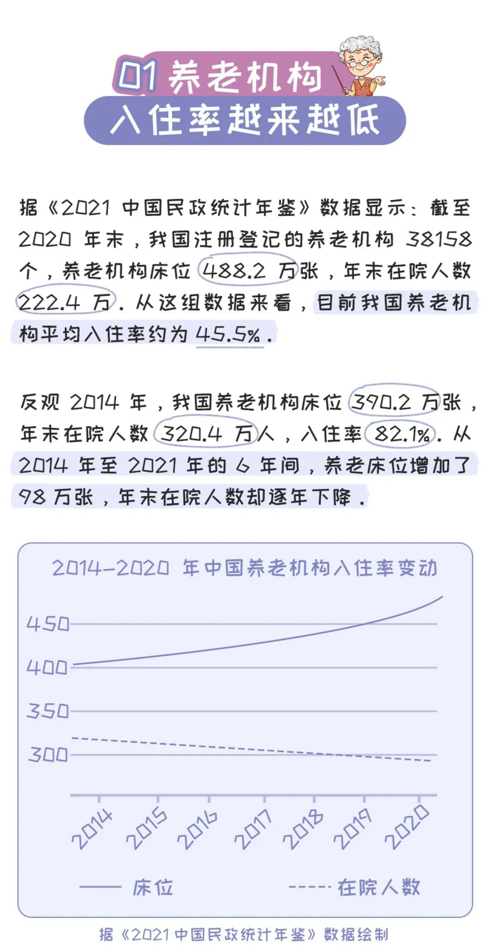 摘要:随着我国老年化进程的不断加深,不少养老机构兴起,住进养老院也成了许多年轻人的退休目标,但其实,养老机构的数量虽然越来越多,实际入住率却并不算高,未必就是养老的”最优解”。