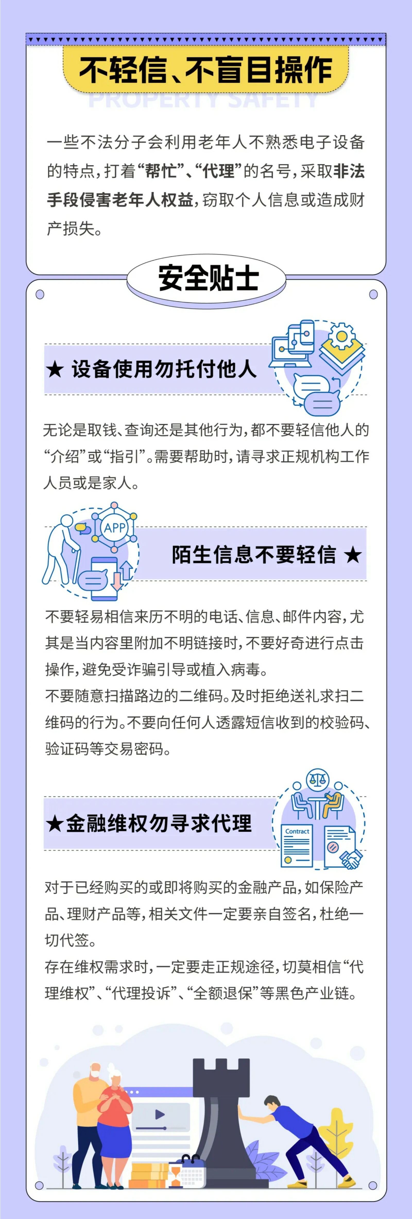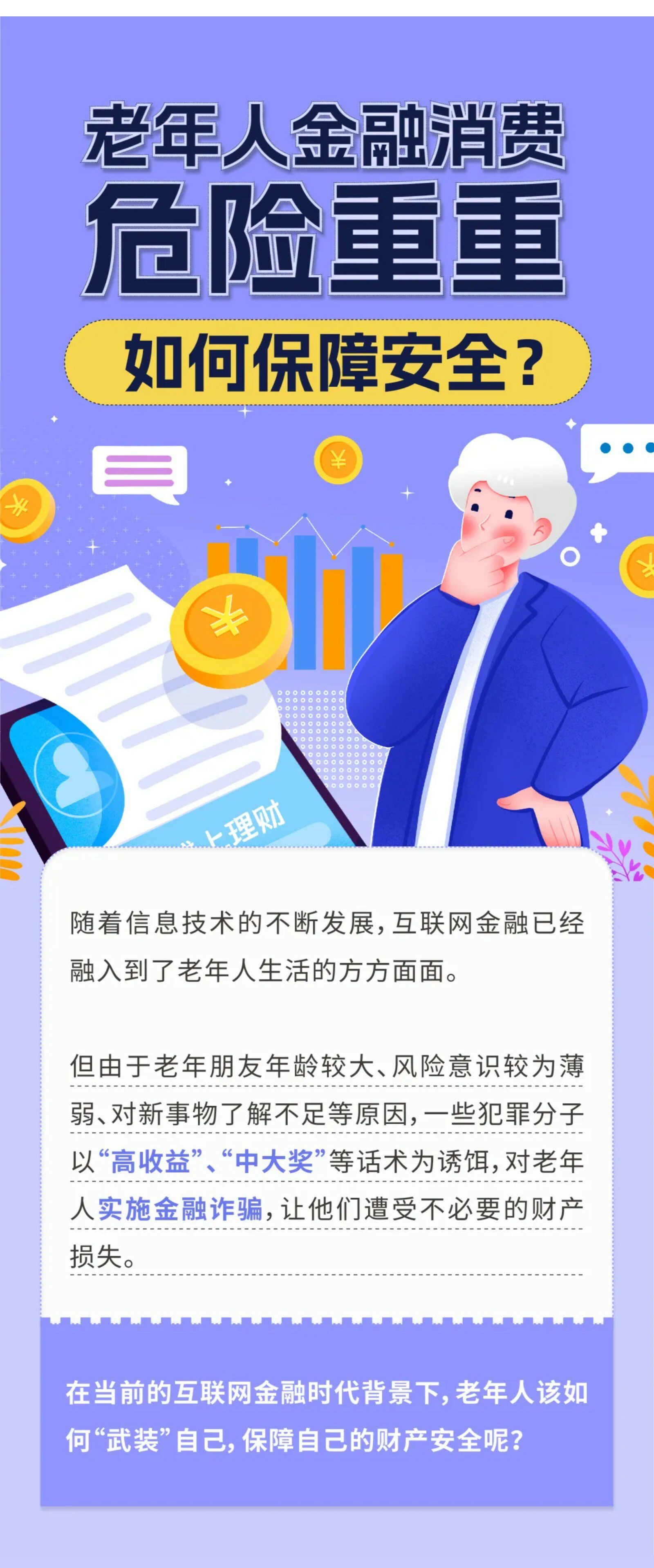 摘要:金融消费和老百姓的生活息息相关,但风险亦无处不在。中老年人,更是成为不法分子重点欺诈对象,如何才能科学规避这些风险,保护金融消费者的合法权益呢?下面这份金融消费者权益保护安全攻略,请您查收!