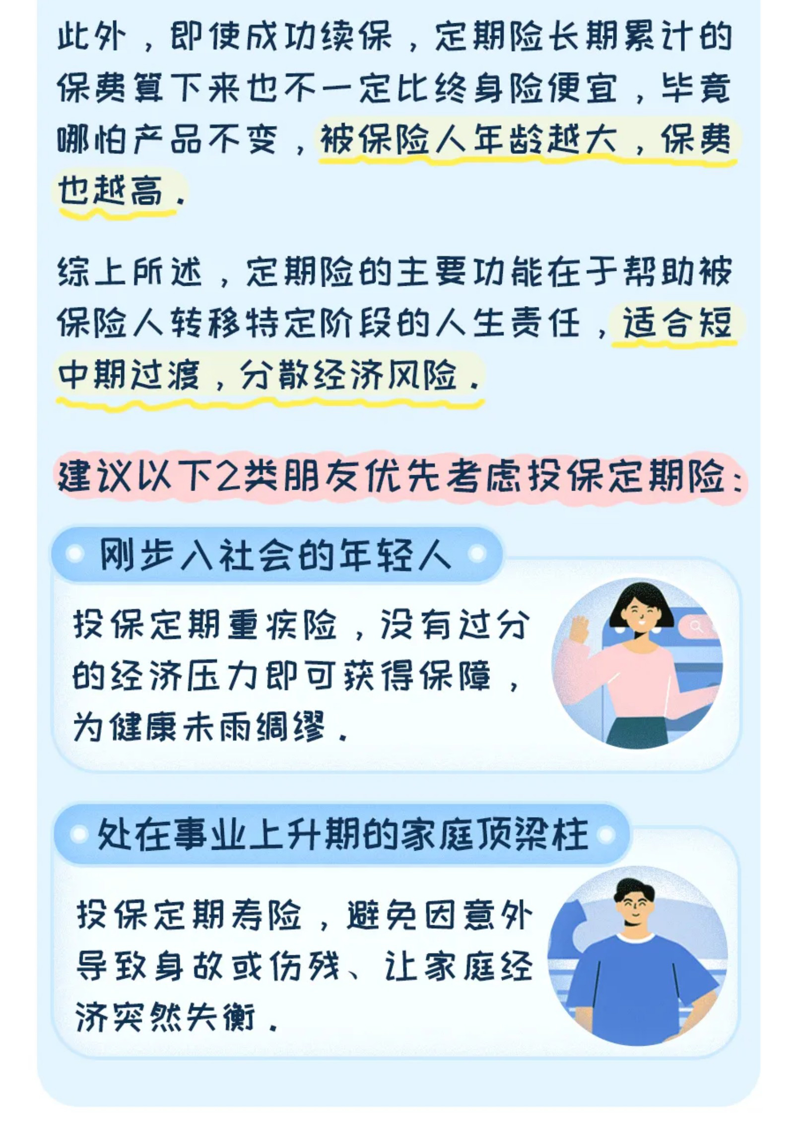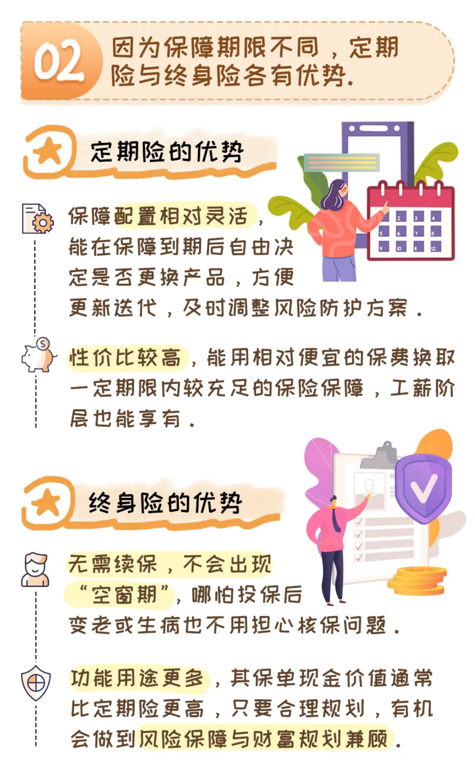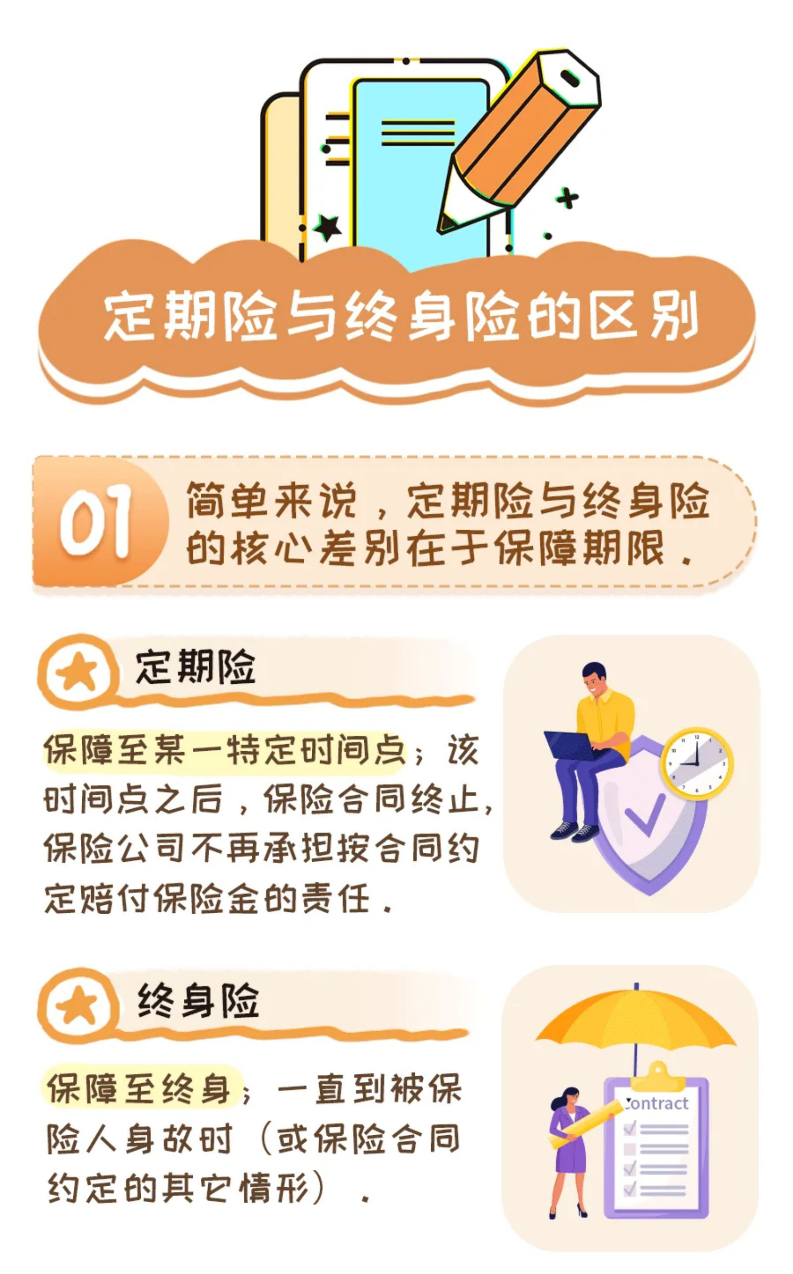 摘要:人想要得到的安全保障,肯定是以自己的寿命为限。在保险保障的范畴里,这种期限被划分为“定期”与“终身”。保终身的产品固然好,风险可以得到极大程度的保障。可是保终身的产品,对于一些家庭来说很难负担。所以,保险是买定期还是买终身呢?