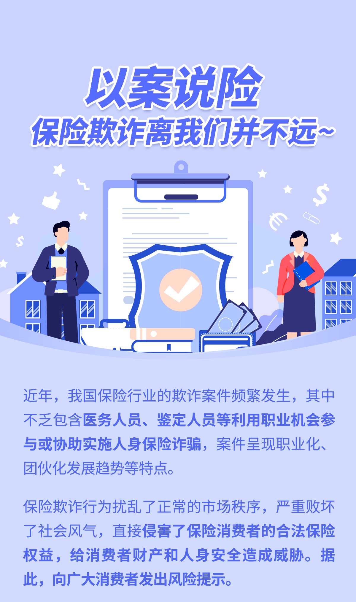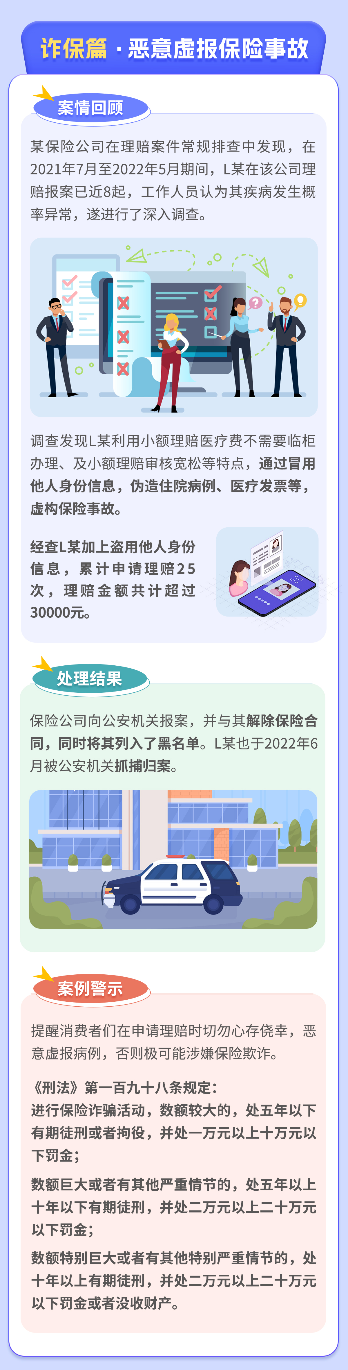 摘要:保险欺诈行为扰乱了正常的市场秩序,严重败坏了社会风气,直接侵害了保险消费者的合法保险权益,给消费者财产和人身安全造成威胁。据此,向广大消费者发出风险提示。