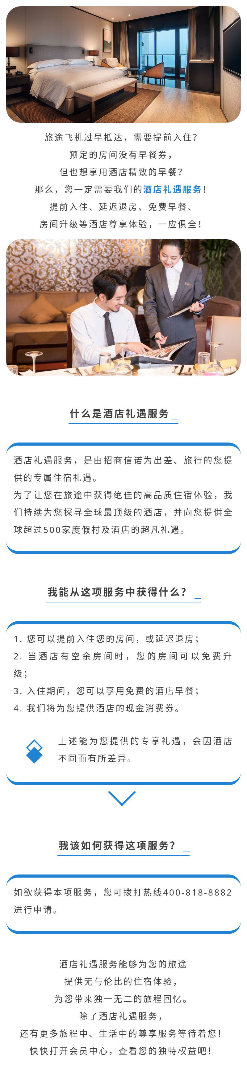 摘要:旅途飞机过早抵达,需要提前入住?预定的房间没有早餐券,但也想享用酒店精致的早餐?那么,您一定需要我们的酒店礼遇服务!提前入住、延迟退房、免费早餐、房间升级等酒店尊享体验,一应俱全!