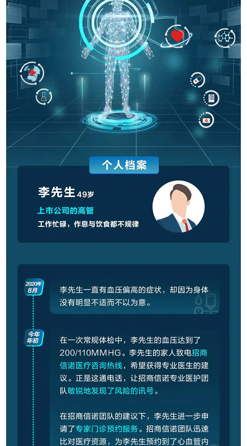 忙碌的工作、不规律的饮食,为李先生的生活带来健康的波澜。在“无声杀手”面前,是招商信诺的医疗团队及时捕捉到了危机的信号!